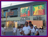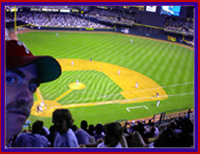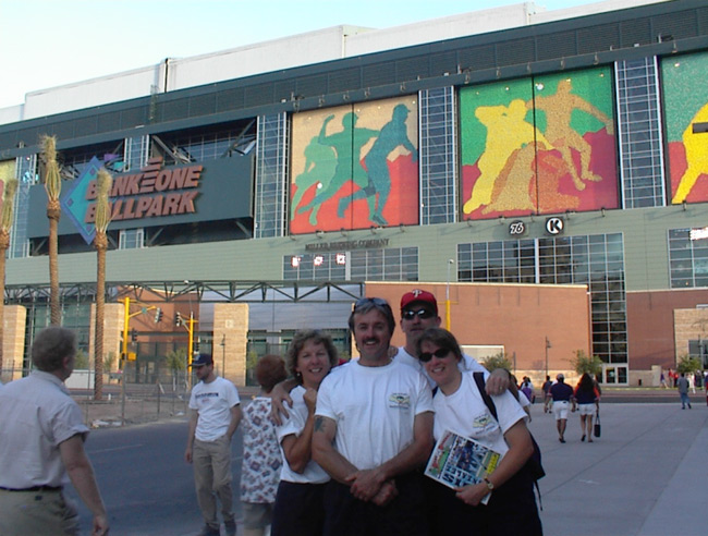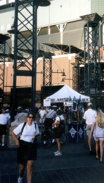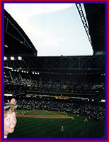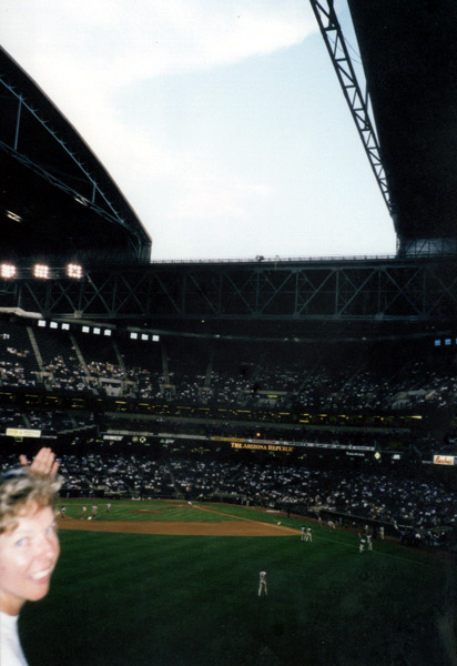 We were disappointed at first because the roof was closed. Bank One Ballpark (the first to have a corporate sponsor) has a retractable roof that opens in 90 seconds; a tribute to the marvels of engineering.