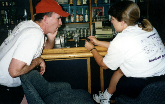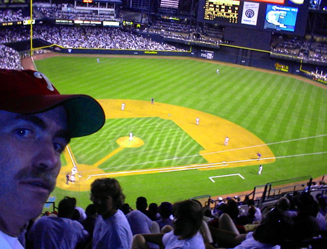 The game was fun. The Diamondbacks won 5-4 beating the San Diego Padres. Jackie, Barry and I cheered for the Diamondbacks, while Fred, for some stupid reason related to the Phillies, cheered for San Diego. The stadium does a good job of keeping the fans involved with the music and jumbo-tron screen. Vendors were constantly up and down the aisles, even in our section.