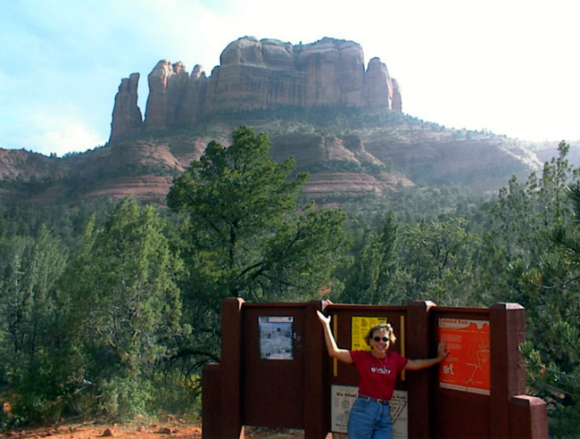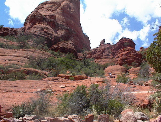 We were perched on an 8 foot wide saddle between the rocks. Looking up, Cathedral Rock loomed some 400 feet above us.