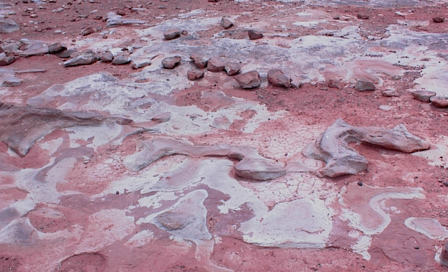 We stopped at a site on the map just west of Tuba City which was labeled Dinosaur Tracks. An Indian guide took us around and showed us dinosaur tracks and egg fossils.