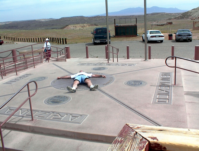 of a body part in each state, although Fred drew a few laughs when he laid down on the four states. The Four Corners tourist area is located on an Indian Reservation and they collect the admission money and control the vendors.