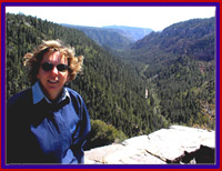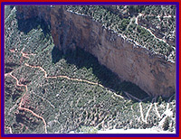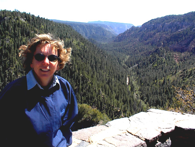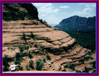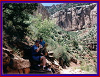 The road descended down through the canyon like a majestic staircase. We could have been in the Pennsylvania mountains except for the huge rock faces visible behind the trees. The Big Kahuna was in the lead with Jackie and Barry following in the possessed Grand Am rental car. On our descent, we traveled through 5 rock layers.