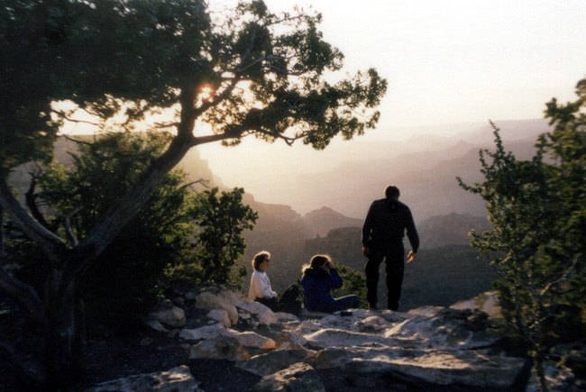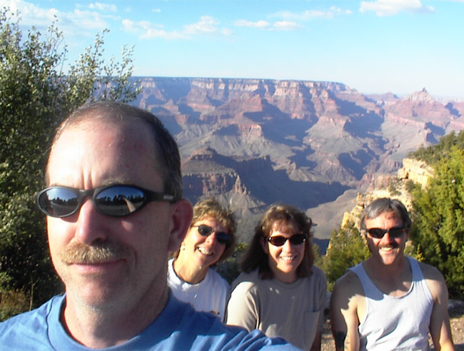 My sister Jackie and her husband Barry were joining us at the Grand Canyon. I had been anxiously waiting, peering out our window and even running out when I heard a car which I thought was them. It wasn't and I embarrassed myself by running up to a stranger and yelling "Jackie". Finally at midnight (3AM Lancaster time) they arrived. They had traveled all day, leaving home at 8 AM. (drive to Baltimore, flight to Detroit, layover in Detroit, flight to Phoenix, 4 hour drive to Canyon) We couldn't wait for them to see the Canyon but their first look would have to wait until morning.