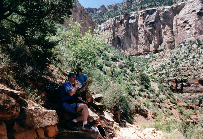 The trail was a series of steep inclines broken up by switchbacks. Shade was available at some of the overhangs and we took advantage of it to rest.