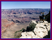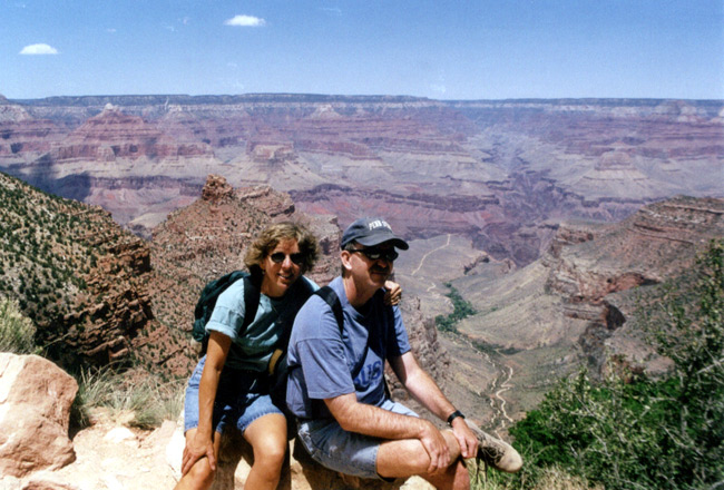 After breakfast in the Yavapai cafeteria, we headed out for our hike. We paused at several sites along the rim for a look at the Canyon. You can't help yourself, the view calls to you. Jackie and Barry were impressed by the splendor and beauty of the scene before them. Within seconds, they had their camera out snapping pictures.