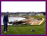 The 7th hole, a par three with an elevated tee box was quite a challenge. We both ended up in the sand, which is better than the ocean.