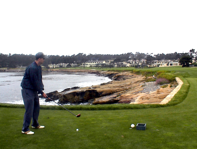 The starter put us all at ease as we waited for our big moment to tee off at Pebble Beach. He took our names to have our complimentary bag tags ready for us after our round. We both got off the first tee in decent shape and we were on our way.