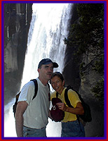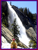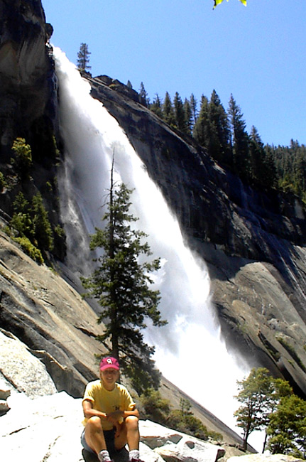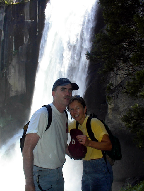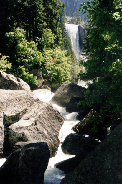 About three quarters of the way up, the trail was suddenly protected from the mist by a rock outcropping and we stopped to catch our breath. Drenched, but refreshed, as if we had just run through a spring rainstorm, we turned to stare at the Vernal Falls. Sunbeams dancing off the mist had created a beautiful rainbow. We were awestruck at the natural beauty before us.