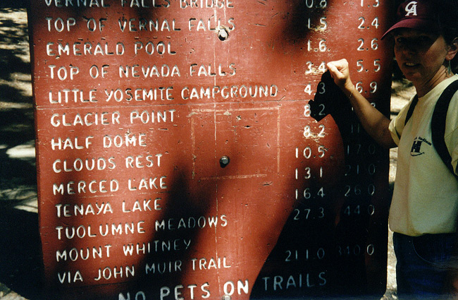 Fred gave me the option of picking out our hike for the day and I was like a kid in a candy store perusing all the choices. I finally opted for the Top of Vernal Falls trail which was 3 miles round trip and rated as strenuous due to an elevation gain of 1,000 feet. The Yosemite Guide predicted the hike would take 4 hours.