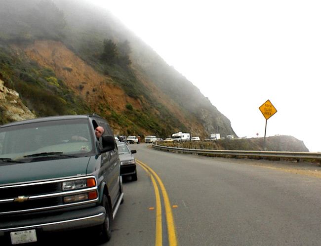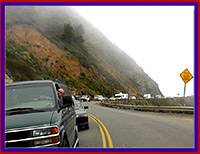 It was misting and foggy as we started out. Route 1 is a winding road along the ocean and not much fun when there is no view.
