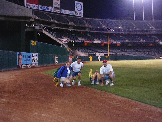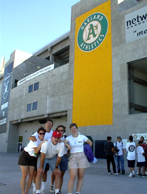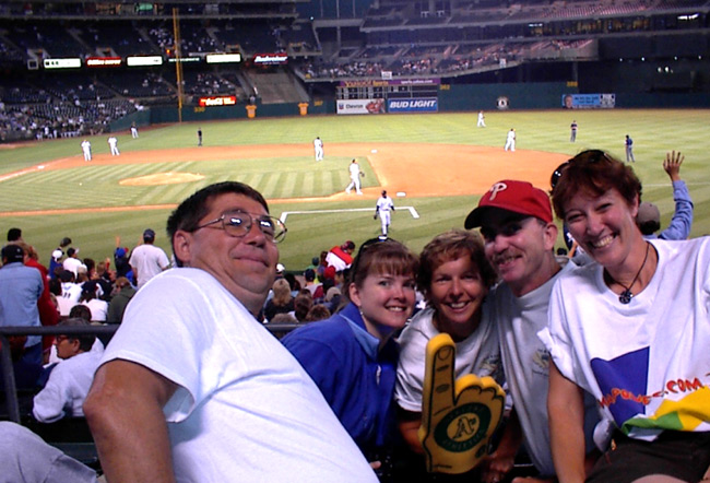 Back in February, the Oakland A's had called Fred in response to a letter about our trip. The guy had told Fred to call him when we got into town and he would fix us up with tickets. Only problem-he was no longer with the A's. Fortunately, Fred had gotten another name and Parker Newton came through with 5 comp tickets. All we had to do was pick them up at the Will Call window. Thanks Parker!