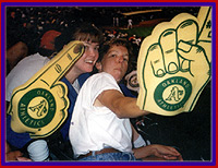 It felt unusual for us to be with a group of friends going to the game. Our tickets were great-lower level along the first base line. We had a fabulous view of the field. Heidi was particularly excited because she used to live in Seattle and the Oakland A's were playing the Mariners.