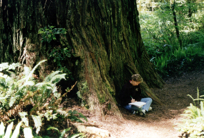 As I sit in the cradle of my tree, everywhere I look I am surrounded by natural beauty. The lush green foliage is the brightest I have ever seen. Sword ferns grow five feet tall, their branches look razor sharp but are soft to the touch.