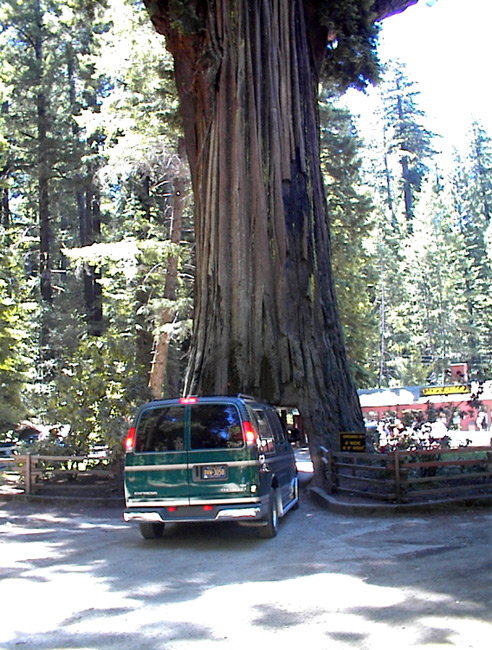 Farther along the Avenue we stopped near the drive through tree for a light picnic. Oops! No way for thour vehicle. Redwoods are big but they are not big enough for the "Big Kahuna". It was quiet and peaceful among the trees. Ferns and clover grew in patches on the forest floor in areas where the sun glimmered through the trees. It was a perfect setting for an afternoon respite.