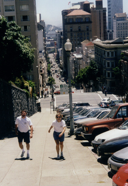 Then came the Pride '99 Parade. It was seriously mobbed. We were people-to-people in the crowd trying to get a glimpse of the parade. There was lots of food, and other assorted booths. This is truly part of the San Francisco culture, as is the beautiful Civic Center and downtown area. Parking is another story.