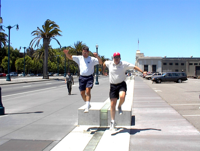 Bill and Fred decided to make the walk back more interesting by walking and running in different wierd ways.