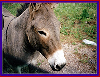 Before exiting the park, traffic was stopped again, this time for burros. These laid back animals mosey right up to the car and stick their faces in the window as if to say, "I know you can't resist me". We determined that they were looking for some treats and that was confirmed a short way down the road when we saw groups of tourists feeding the burros carrots and ice cream. It is very hard to resist their soulful looks as they amble up to the car but we did. How does a burro go back to meadow grass and plants after ice cream?