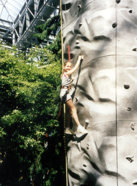 My favorite was watching her on the rock climbing wall. She scampered up the easy route in no time flat. The more difficult route posed a few problems until she got some hints from the instructor. We came back later and she tried the Most Difficult where a $20.00 bill is waiting at the top. I admired her persistence, but she was about two inches too short although she did much better than most of the people who tried. It was funny to watch these macho guys who thought they could muscle their way up and grab the $20 but barely made it up two pegs.