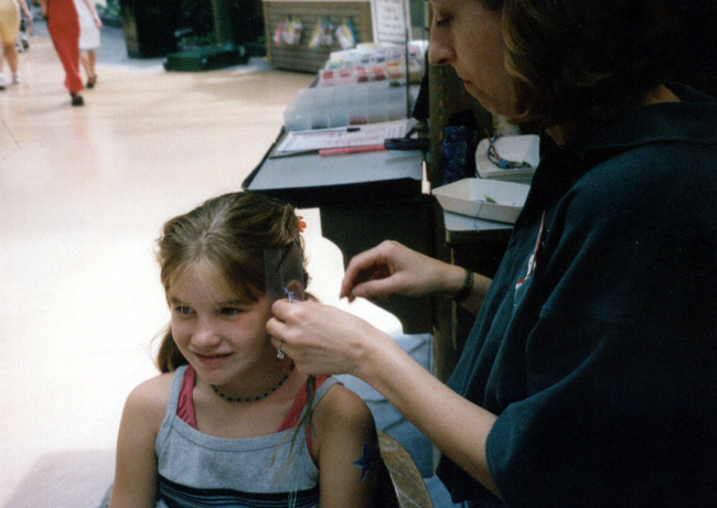 Today at the mall, I went on the water rides and the rollercoaster. Fred and I did the bumper cars and we ganged up on people and bumped them. Roger and I did the Mighty Axe where you go upside down and round and round. Joni and I went on the log flume and we shot down the waterfalls. I got my hair wrapped at this one booth and she has been doing it for seven years.