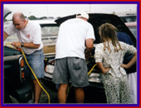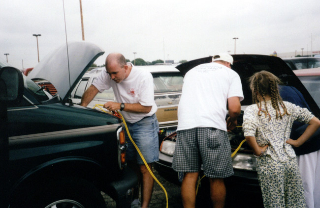 On the way out we did our good deed for the day. As we were searching for the Kahuna (only in the M of A parking lot could you lose that beast) we saw a harried Mother (one of many here) who couldn't get here car started. After finding the van we jumped her battery and she was on her way.
