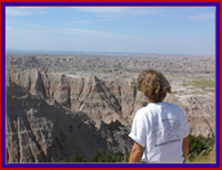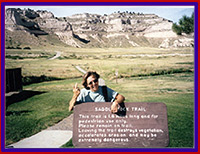 On to the Badlands which aren't so bad. Easily eroded rock has formed into craggy cliffs, delicate spires, and grooved canyons. Most times the climate is arid and precipitation comes infrequently but with a vengeance causing changes in the soft rock. Tree seedlings