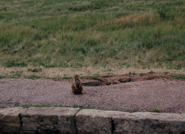We were still searching the prairie for wild life when we detoured through Custer State Park. We had read in our "Scenic Drives in America" book that this was a rewarding way to get to Mount Rushmore. Was it ever! The unspoiled beauty in the park supported a variety of wild life. At one of the view points, we saw two prairie dogs. We suspected that people feed them because they did not seem afraid. It was hard to resist their adorable begging but at all the parks, visitors are advised not to feed the animals. The animals become dependent on human food and then starve over the winter when the tourists are gone.