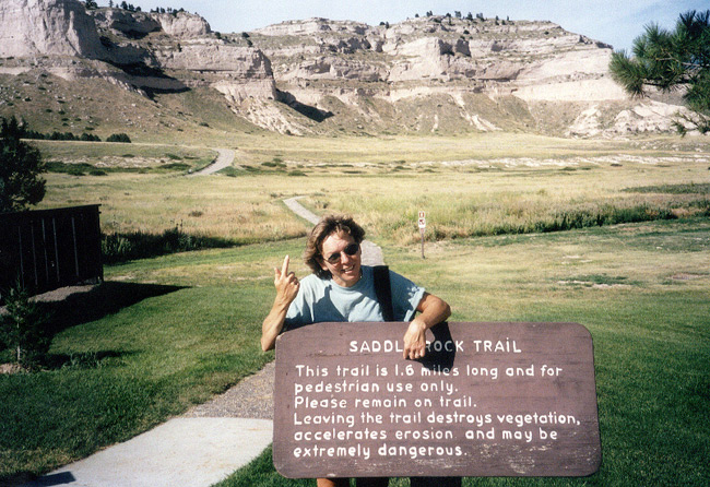 We had our Nebraska beer in the 18th Street Bar and Grill in the town of Scotts Bluff, population 13,700. The bar had a comfortable atmosphere with peanut shells all over the floor. A guy and three women at the next table had obviously been there for a few hours. They were having a good time and the waitress was entertaining them with endless toasts (the content reminded me of some of the toasts Tara gives). When I complimented the waitress on her repertoire of toasts, she said, "One thing you should know is that I am a smart ass. I like to have fun at my job." Way to go, girl.