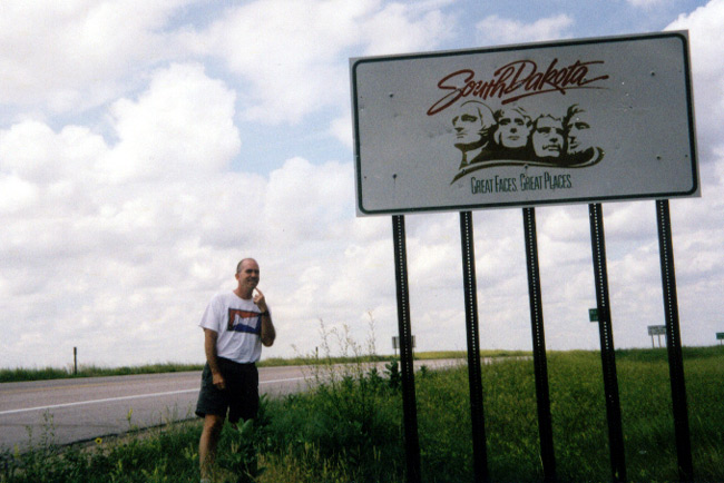 We were cruising down the highway this morning and almost missed our photo of the Welcome to South Dakota sign. Schreech! Gently slam on the breaks and U-turn the BK. Sometimes stopping for the state photos is a pain, but we will be glad to have them as a remembrance when we get home. The South Dakota slogan is Great Faces, Great Places in South Dakota.