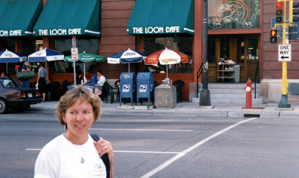 We had heard about a bar called The Loon Cafe near the Target Center which was voted as one of the Top100 Bars in America. We could not locate the Loon so I asked a young man in a striped blue shirt and tie for directions. We set off and as we were standing at the cross walk, he came running down a half block to tell us we needed to turn right instead of left. That was nice of him to not let us wander around dazed and confused as we searched for Loons.