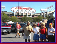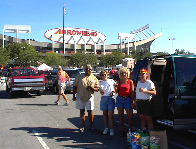 After the game, we set out to get Chiefs tickets. Talk about timing-they were playing next door at 7:00 and the decision was unanimous to go to the game. Karen and Kelly had never been to a pro football game before. The parking lot was already full of red and yellow shirted Chiefs fans.
