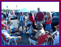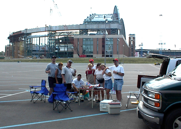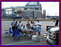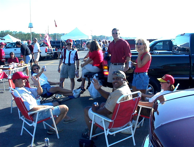 for groups of fans decked out from head to foot in Chiefs apparel. We ended up being invited to tailgate with Ron, Michael, John and their gang. They were so nice to us, offering us beer and food. They have a group of 40 people from all walks of life who tailgate
