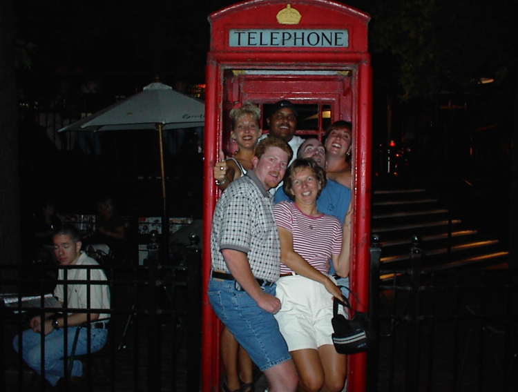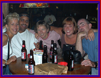 We had taken a cell phone with us and were waiting to hear from Fred and Joni, because we didn't know when they were scheduled for arrival, and we were pretty anxious to really start having fun. Joni finally called us and after a long and hard decision making process we decided to meet at a bar at The Plaza called Houston's. Karen, Ty, and I walked to Houston's right away, even though Fred and Joni weren't scheduled to arrive for another hour. We were able to get seats in the bar that looked out over the street, this way would certainly be able to see them coming. They finally arrived at Houston's and we were all thrilled to see them, and anxious to catch up on the last four months of their adventure.