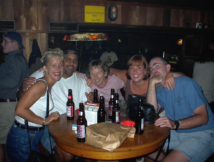 We continued our journey and came upon an old fashioned telephone booth that was calling our name. We saw three guys standing nearby chatting and asked if they would mind taking our picture in the phone booth. Not only did they take the picture, they joined us in the phone booth. It was a tight fit, but it was pretty much fun. There was a bar across the street, it wasn't Lynn Dickie's but they did have cold beer, so it was into The Bait Shack we went. The Bait Shack was nice enough, but it was relatively mellow so we decided to continue our search for the elusive Lynn Dickie's.