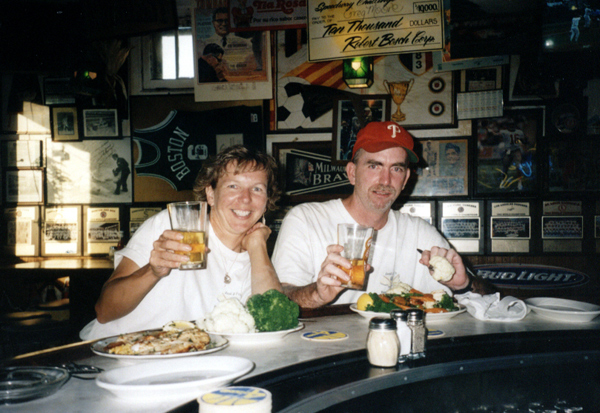 On the way back to our hotel, we stopped at the 4th Base Tavern, a baseball bar we read about in our book. This has got to be the friendliest bar in Wisconsin. As soon as we walked in, the bartender greeted us with a cheery welcome. We ordered beers and Terry, the bartender asked us if we were hungry. Fred said, "Yes, we will look at a menu." Terry asked if we had ever been there before and upon our no, said, "Oh, you are virgins. Follow me."