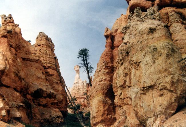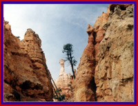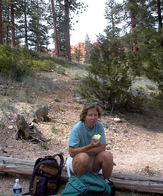 This part of the trail was not heavily traveled so we were alone with the beauty and silence. From our seat on a log, we could look up and stare at the magnificent hoodoos. They looked like pieces from the game of Blockhead. Only these square, rectangle and circular pieces weighed 20 tons each.