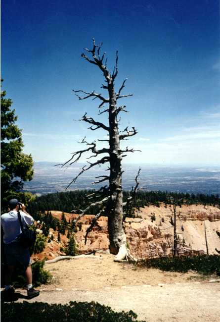 After talking to the ranger, we decided to drive the 18 miles from the Visitors Center to Rainbow Point which is an elevation change of 1,000 feet. Bryce Canyon park contains three life zones. Our drive through the life zones started at the entrance beginning with the Upper Sonoran pinyon and juniper trees while at the Visitor Center, the Transition zone is dominated by towering ponderesa pines and finally as we continued to climb into the Canadian life zone the forest gave way to fir, spruce and aspen trees. (A quick little geography lesson) Needless to say the views were tremendous.