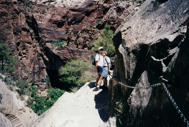 force. The other side drops straight down, way down. Fred, who claims he is afraid of heights, was very brave. He simply did not look down. I did and it was dizzying but exhilerating.