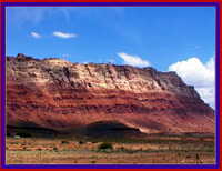 As we were leaving the park, straight ahead the painted dessert came into view. Exquisite shades of pink, red and blue pastels were beautifully laid out on the horizon. These hazy pastel stripes appeared to meet the sky and we were taken with the beauty laid out before us as we stared through the windshield. This was in such contrast from the stark black volcanic ash area that we had just viewed.